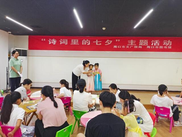 七夕今宵看碧霄,牽牛織女渡河橋。8月20日,一場別開生面的“詩詞里的七夕”主題活動在周口市圖書館青少年活動中心舉行。書香覓詩詞、同心題詩詞、粘土畫詩詞……參與的孩子在詩情畫意中感受到中華傳統節日的內涵。