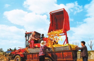 聊起機械收獲玉米的好處,付井鎮(zhèn)王寨村黨支部書記王運啟眉飛色舞。“玉米機械化收割,一次能完成玉米莖稈切割、摘穗、剝皮、集穗、秸稈粉碎等多項作業(yè),秸稈打碎還田,既保護環(huán)境,又給土地增了肥,增加了村民的種植效益?!?/p>