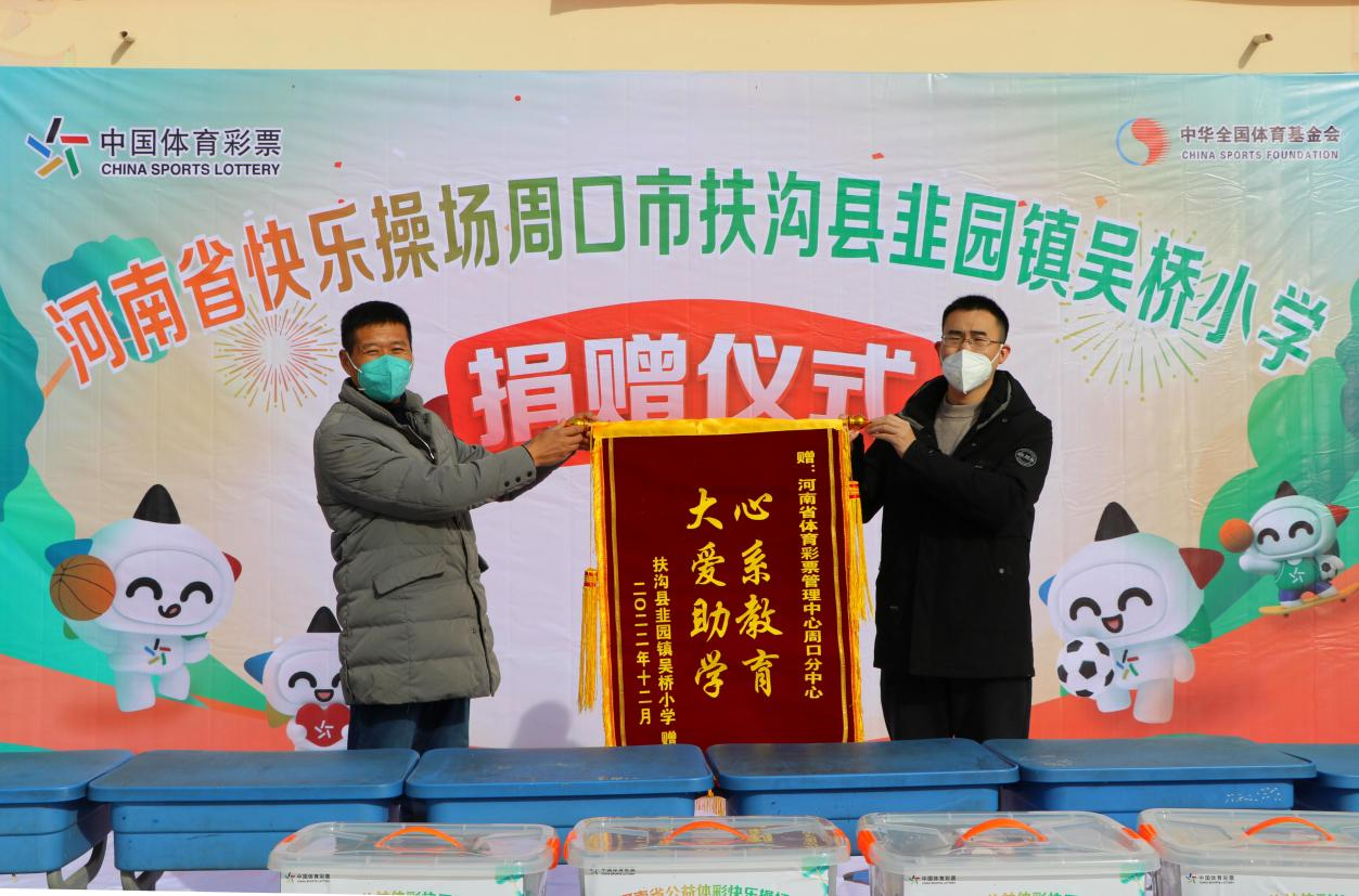 此次捐贈的體育器材有籃球、足球、排球、乒乓球拍、羽毛球拍等價值近2萬元的體育用品。為表達謝意,吳橋小學向周口體彩分中心贈送了“心系教育,大愛助學”的錦旗。