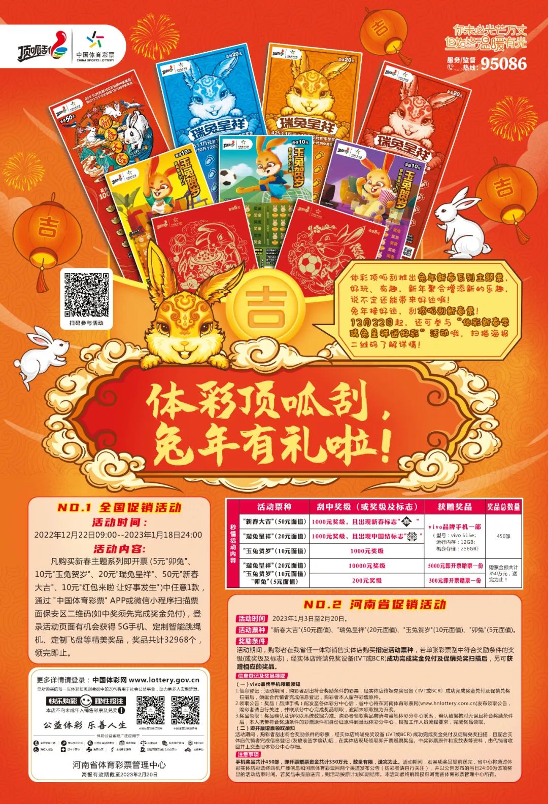 2.“體彩新春季”全國促銷活動(dòng)細(xì)則詳見“中國體育彩票”微信小程序或“中國體育彩票”APP活動(dòng)頁面,或登錄中國體彩網(wǎng)查詢相關(guān)信息。
