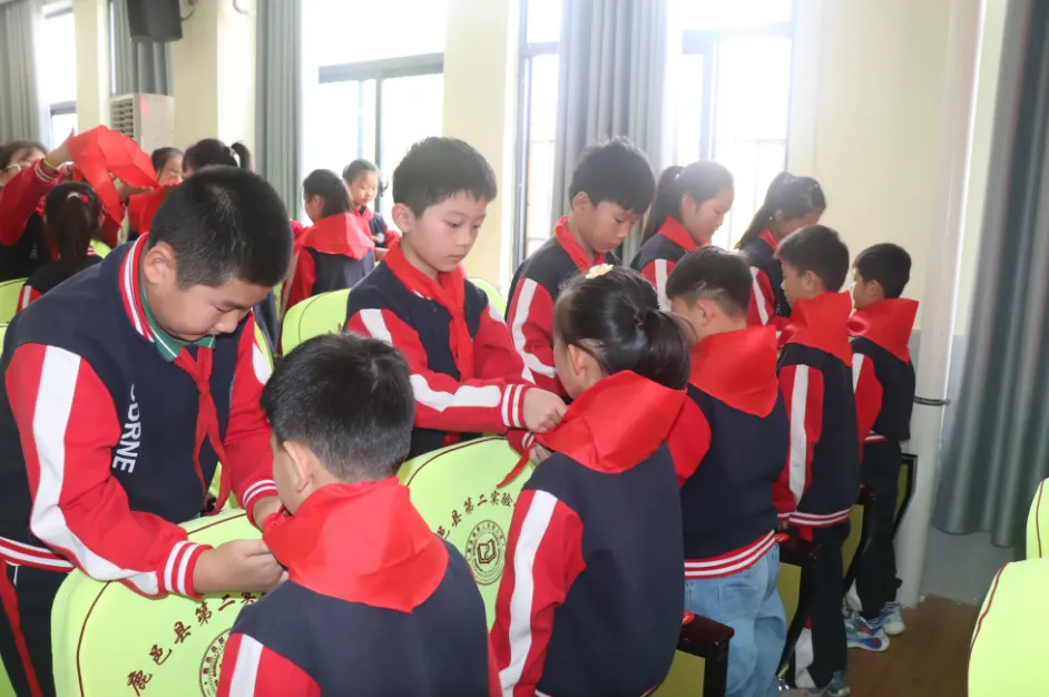 儀式上,該校副校長肖東旭宣布新隊員名單,230名同學加入中國少年先鋒隊,成為一名光榮的少先隊員。緊接著,四年級優秀隊員代表莊重地為新隊員代表系上鮮艷的紅領巾。在大隊長的帶領下,全體隊員在隊旗下莊嚴宣誓。少先大隊委員熱烈歡迎新隊員加入。