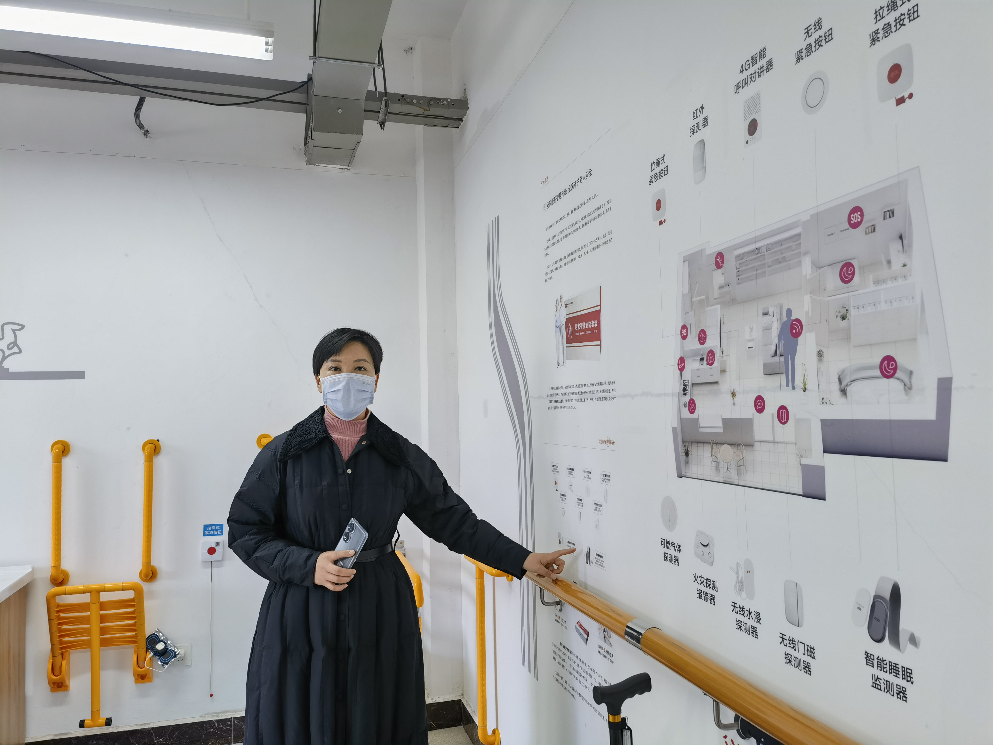 走進建業社區養老服務中心居家養老體驗室,衛生間的“浴改淋”“蹲改坐”,一字形扶手、折疊浴椅、防滑墊,廚房用的煙霧、燃氣和水浸監測報警器;房間里的防撞條、感應夜燈等居家適老化改造器械一應俱全。此外,還有可以安裝在老人床邊的智能監測設備和報警器,遇到問題只要按下緊急呼叫按鈕,不僅能聯系到子女,還能得到社區“智慧養老安全預警平臺”的迅速回應,24小時為老人健康安全保駕護航。