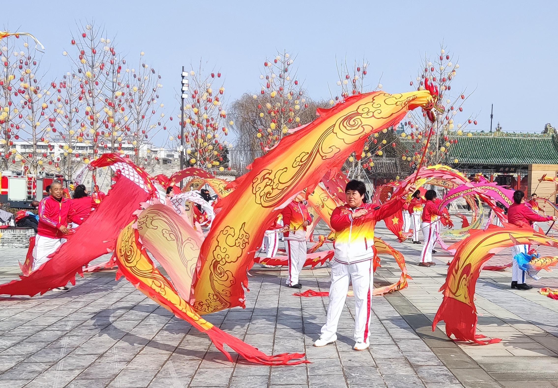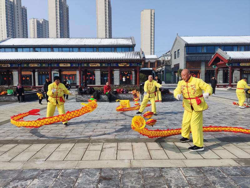 2月9日,在周口首屆“三川十館·春會”歷史街區關帝廟廣場上,精彩紛呈的劃旱船、抖空竹、舞鞭陀龍等民俗表演節目向游客送去了春節的美好祝福。人們在春會的各個活動板塊,趕大集、賞民俗,喜迎新年的到來。(記者 王吉城 攝)