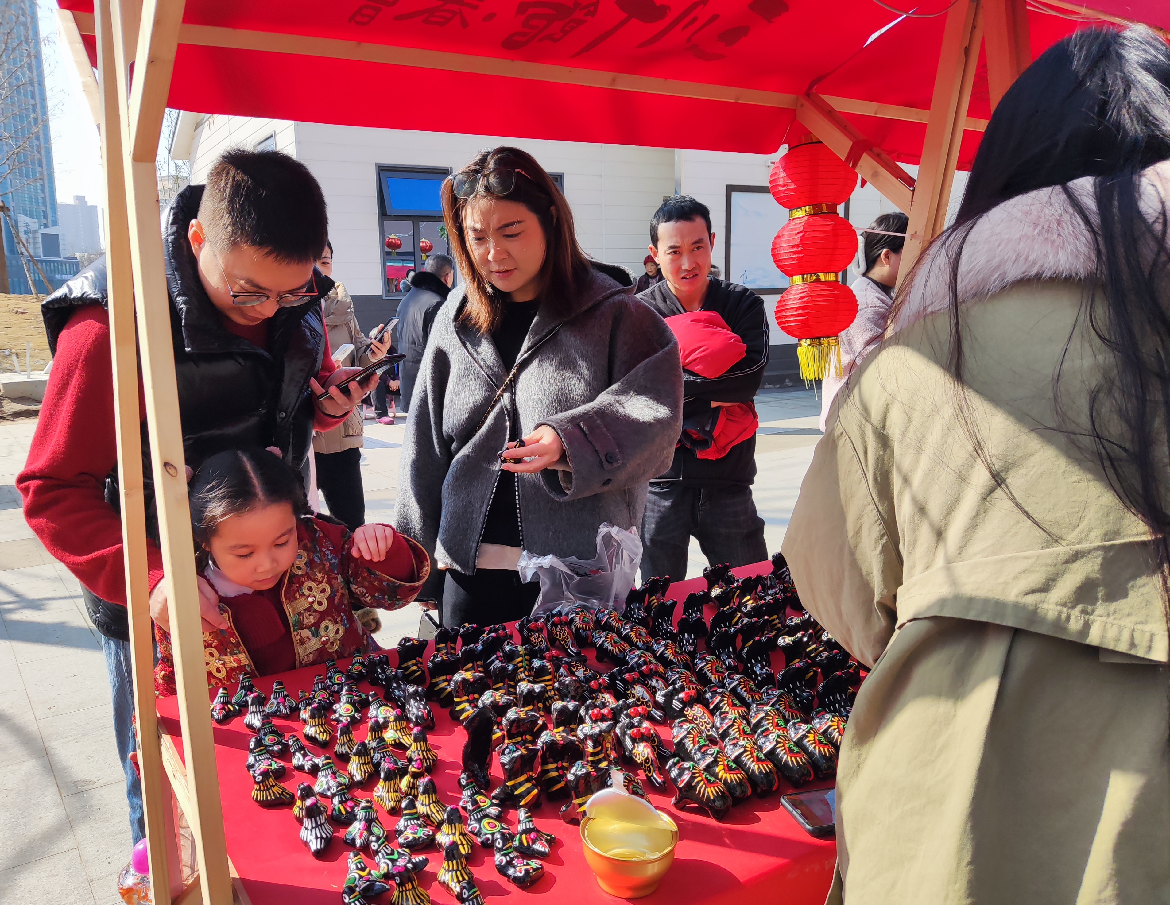 2月12日,“三川十館·春會”關帝廟歷史街區的“古風集市”上,人來人往、熙熙攘攘。布老虎、泥泥狗、剪紙、棕編、草編、糖人等具有周口特色的非遺產品營造了濃濃的年味,吸引大量游客前來欣賞、購買。多姿多彩的非遺產品也讓龍年春節更加具有文化氣息。(記者 王吉城 攝)