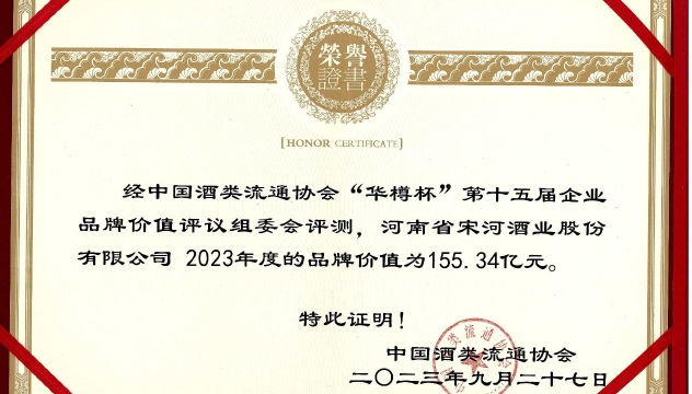 [鹿邑]宋河酒業:2023年度品牌價值為155.34億元