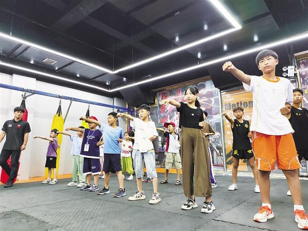 6月21日,小記者在周口樂(lè)高搏擊運(yùn)動(dòng)館練習(xí)武術(shù)基本動(dòng)作。當(dāng)日,在該館教練的指導(dǎo)下,小記者們不僅了解了武術(shù)對(duì)身體發(fā)育、控制體重、提升專注力、抗挫力的意義,也學(xué)習(xí)了武術(shù)禮儀。