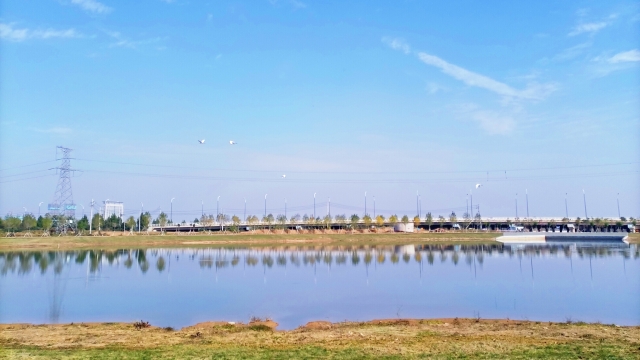 晚秋時節,周口伏羲湖濕地公園風景宜人,舉目望去,波光瀲滟的伏羲湖水面上倒映著藍天、白云、飛鳥,“秋水共長天一色”的絕美畫卷讓人心醉。