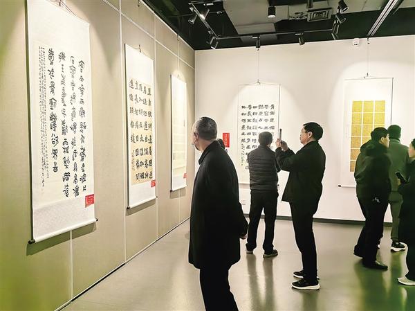 3月14日,市民在周口美術館觀展。由中共河南省委宣傳部、河南省文學藝術界聯合會指導,河南省美術家協會、河南省書法家協會等部門共同主辦的“翰墨潤中原——河南省美術書法作品大賽獲獎作品展周口巡展”當日開展。