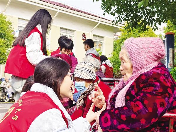 3月15日,志愿者和老人拉家常。當日,河南科技職業大學組織青年志愿者走進周口市老年護理院,開展以“暖心敬老行,情滿夕陽紅”為主題的敬老愛老活動。