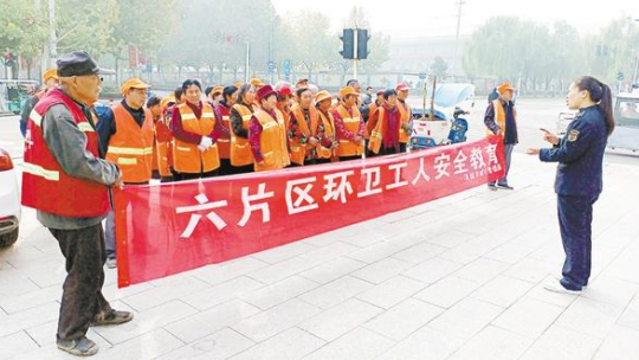 項城市城管局六片區負責人為環衛工人講解安全知識