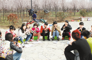 項城市以群眾喜聞樂見的傳統嗩吶、廣場舞等為載體,大力開展群眾性文化體育活動,使廣大市民精神面貌煥然一新。圖為孩子們在學習吹奏嗩吶。(張永久 攝)