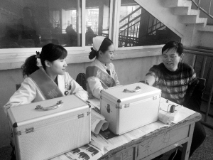 每逢周末或節假日,鄲城縣衛生系統都會組織人員走上街頭,宣傳衛生健康知識,為群眾進行義診。圖為縣人民醫院醫生正在為群眾測量血壓。