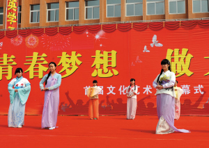 該校把特色教育作為發(fā)展的名片,推出“一班一品一特色”活動(dòng)。學(xué)校建立以班級(jí)為單位的社團(tuán)組織,并細(xì)分為體育類、舞蹈類、樂器類、美術(shù)類四大類別,共70個(gè)社團(tuán)。比如:美工社團(tuán)制作漢服進(jìn)行表演,每一次都讓在場(chǎng)的觀眾潸然淚下,為自己是一個(gè)漢唐中華子孫而驕傲,為著漢唐服裝而自豪。學(xué)校出版了《求真大課堂》《走在成長(zhǎng)的路上》《花季無悔》《中學(xué)生科技創(chuàng)作》《班主任德育思想錄》《國(guó)學(xué)之蘊(yùn)》《家和萬事興》《共創(chuàng)一個(gè)夢(mèng) 和韻文昌之家校共建》《“文昌杯”文明我先行 共筑一個(gè)夢(mèng)》主題征文作文選等校本教材。為豐富校園文化生活,學(xué)校邀請(qǐng)中國(guó)政法大學(xué)的霍登科,歷史文化學(xué)者王少清,青少年心理教育專家張海選、萬禮彬,周口市中心醫(yī)院婦產(chǎn)科主任楊莉,河南國(guó)學(xué)院的施柳貞、王福琪、楊茹梅以及國(guó)內(nèi)外優(yōu)秀大學(xué)生對(duì)學(xué)生進(jìn)行國(guó)學(xué)誦讀和教育、演講比賽、法制教育、夢(mèng)想目標(biāo)教育、青春期心理和生理教育等活動(dòng)。在該校首屆“做大成教育 展青春夢(mèng)想”文化藝術(shù)節(jié)活動(dòng)中,有一項(xiàng)活動(dòng)叫珍藏十年“心愿瓶”,當(dāng)滿載學(xué)生夢(mèng)想的心愿瓶準(zhǔn)備珍藏時(shí),晴天出現(xiàn)了彩虹,讓在場(chǎng)的領(lǐng)導(dǎo)、家長(zhǎng)、學(xué)生很驚嘆,說文昌中學(xué)的學(xué)生目標(biāo)遠(yuǎn)大,定有大才出現(xiàn)。這些有意義的活動(dòng)對(duì)廣大未成年人的身心健康起到了很好的促進(jìn)作用。