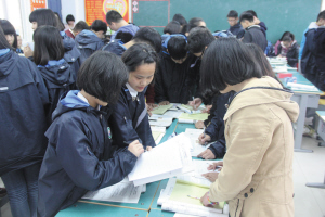該校將課堂名字定為“求真大課堂”,以“真”字作為學(xué)校一切教育教學(xué)和管理的衡量標(biāo)準(zhǔn)。朱貴華說,求真就是要真教、真學(xué)、真嚴(yán)、真愛、真實(shí)、真會(huì)。為提高課堂教學(xué)效果,該校總結(jié)出一套獨(dú)特的課堂教學(xué)方法——“七音和鳴”。分管教學(xué)工作的副校長(zhǎng)徐其運(yùn)用“1234567”,即哆來咪發(fā)唆拉西”來詮釋“七音和鳴”法。“1”就是一個(gè)學(xué)習(xí)目標(biāo);“2”就是提前兩分鐘進(jìn)班,布置2個(gè)任務(wù)(出示目標(biāo)、檢查學(xué)情);“3”就是準(zhǔn)備3個(gè)本子,即學(xué)情檢效本、跟蹤本、糾錯(cuò)本;“4”是4個(gè)維度考評(píng),即高速度、準(zhǔn)確度、干凈度、參與度;“5”是5個(gè)跟蹤,即節(jié)跟蹤、日跟蹤、周跟蹤、月跟蹤、學(xué)期跟蹤,堅(jiān)持“抓緊跟蹤不放松、我在文昌必成功”的教育信念;“6”是6個(gè)環(huán)節(jié),即激情導(dǎo)入、自研自探、合作探究、展示質(zhì)疑、師生點(diǎn)評(píng)、當(dāng)堂檢測(cè);“7”是7個(gè)評(píng)價(jià),即教師的教案、學(xué)生的學(xué)案、練案、觀課記錄的每周業(yè)務(wù)評(píng)價(jià)及對(duì)學(xué)生的即時(shí)性、激勵(lì)性、長(zhǎng)效性評(píng)價(jià)。