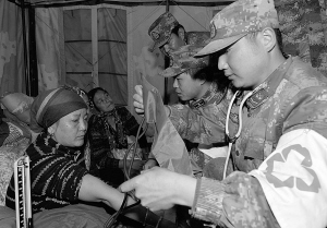 4月27日,西藏軍區日喀則軍分區部隊官兵在為尼泊爾受災群眾義診。