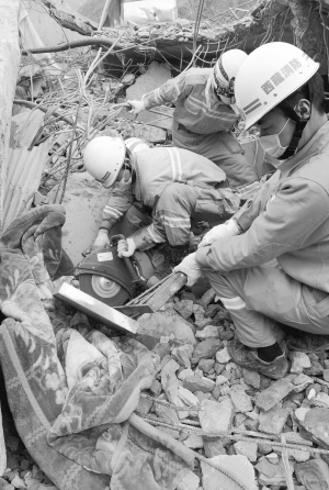 4月28日,武警日喀則消防支隊在樟木鎮進行搜救工作。