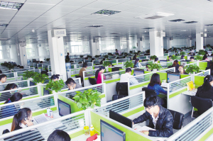對口幫扶沈丘縣的央企大唐電信集團,經過半年來緊鑼密鼓的建設,大唐融合(河南)信息服務有限公司暨沈丘云計算呼叫中心第一期已于今年4月份正式運營。目前,第一期300名員工已投身呼叫中心客服行業。圖為第一批員工昨日正在緊張工作。(記者 韋偉 通訊員 王祥宇 攝)