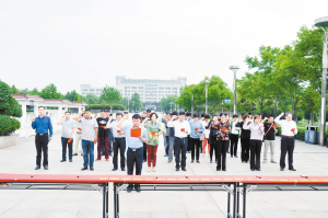 5月15日上午,川匯區政協和黨外知識分子聯誼會聯合開展“崇尚道德、恪守誠信”宣誓暨簽名活動。大家在新區廣場誠信鼎前鄭重宣誓:“以至誠之心,待人處世;以至誠之德,律言律行……”最后在誠信條幅上簽名。蘇寧 王皓 攝