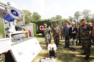 尼泊爾軍方25日在位于加德滿都的軍隊(duì)醫(yī)院大草坪舉行隆重交接儀式,感謝中國(guó)把兩套總價(jià)值5900萬(wàn)元人民幣的野戰(zhàn)醫(yī)院設(shè)備贈(zèng)予尼軍。