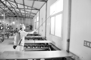 “這個藥品叫順氯·殘殺威,對消殺蚊蠅有很好效果,作用可以持續(xù)3個月左右。這會兒食堂里有刺鼻的味道,但十幾分鐘后基本上就聞不到了。”市疾控中心消毒科科長胡偉說,這次用于消殺蚊蠅的都是高效、低毒的藥物,對人體危害不大。如果學生不小心觸摸到了,只要用清水洗掉即可,不用過于擔心。