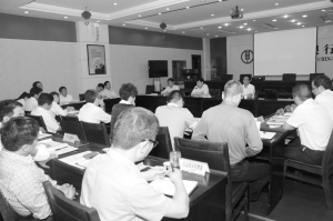 5月14日晚,周口農行組織召開黨委中心組學習(擴大)會議,集體學習《金融互聯網知識講座》、《黨建知識及上級行黨建工作有關要求》等內容。圖為學習現場。(彭濤 攝)