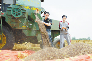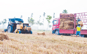 今年“三夏”,沈丘縣堅持做到進地作業(yè)機械全部安裝秸稈粉碎還田裝置,一律執(zhí)行“低留茬、細(xì)粉碎”作業(yè),對不符合作業(yè)要求的機械,及時制止并督促就地整改,達不到標(biāo)準(zhǔn)要求的地塊,責(zé)成村級組織破茬耕翻,確保秸稈粉碎還田質(zhì)量。圖為付井鎮(zhèn)境內(nèi)一輛安裝秸稈粉碎還田裝置的聯(lián)合收割機正在田間作業(yè)。(肖飛 攝)
