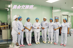 當然,護理工作并非一帆風順。眾所周知,ICU收治的都是重癥患者,患者大多數都有精神障礙,譫妄、昏迷、煩躁不安等狀況很常見,這就需要護士們充滿耐心和愛心。張衛華以實際行動詮釋人間大愛。2014年8月,科室里來了一名Ⅱ級肝性腦病的男性患者,已經精神錯亂且不認人,行為非常危險。由于該病不能使用鎮靜藥物,當責任護士靠近患者時,患者拿起床頭柜上的一個玻璃瓶向護士砸去。作為護士長的張衛華見此情景,臨危不懼,用自己的身軀保護責任護士。只聽見啪的一聲,鮮血順著她的臉頰流了下來,可她還是慢慢走向那名患者,輕聲向他解釋情況以安撫其情緒。患者的情緒漸漸地穩定下來,她才去處理傷口,并輕松地說:“只要沒傷著病人就好。”有一次,科室里來了一名心梗住院的老人,老人的孩子都在外地,得知老人生病住院也沒趕回來照顧,甚至連一句問候都沒有。老人除了要忍受著病痛的折磨,還要忍受對孩子們的思念。張衛華見此情景,非常心疼,為安慰老人,上班期間她都會去陪老人聊天,哄老人開心。老人吵著不舒服的時候,張衛華用藥緩解,同時耐心安撫老人。晚上老人因為孩子的事情,會像一個小孩兒一樣哭泣不止,張衛華心疼地陪在老人身邊,一遍又一遍地安慰說:“別害怕,我在您身邊,我就是您的女兒。”