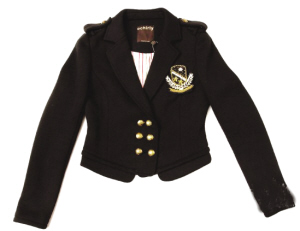 同樣是鐘情排鈕,但跟軍裝風格不同,學院派的紐扣大多位于衣領的下方,并不耀武揚威地宣示自己的地位,更搶眼的應該是外套上的大翻領設計。本年度流行窄領設計,讓學院風格更內斂一些。大熱的色彩除了有標準的寶藍色之外,還有黑、紅雙色,胸口的徽章設計會讓學生味道來得更濃烈。